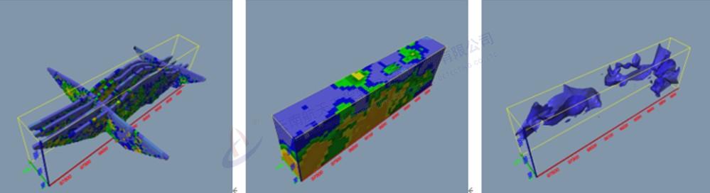 地質(zhì)雷達(dá)三維探測結(jié)果——通過CT切片的形式精細(xì)反映隧道周邊水體三維分布情況